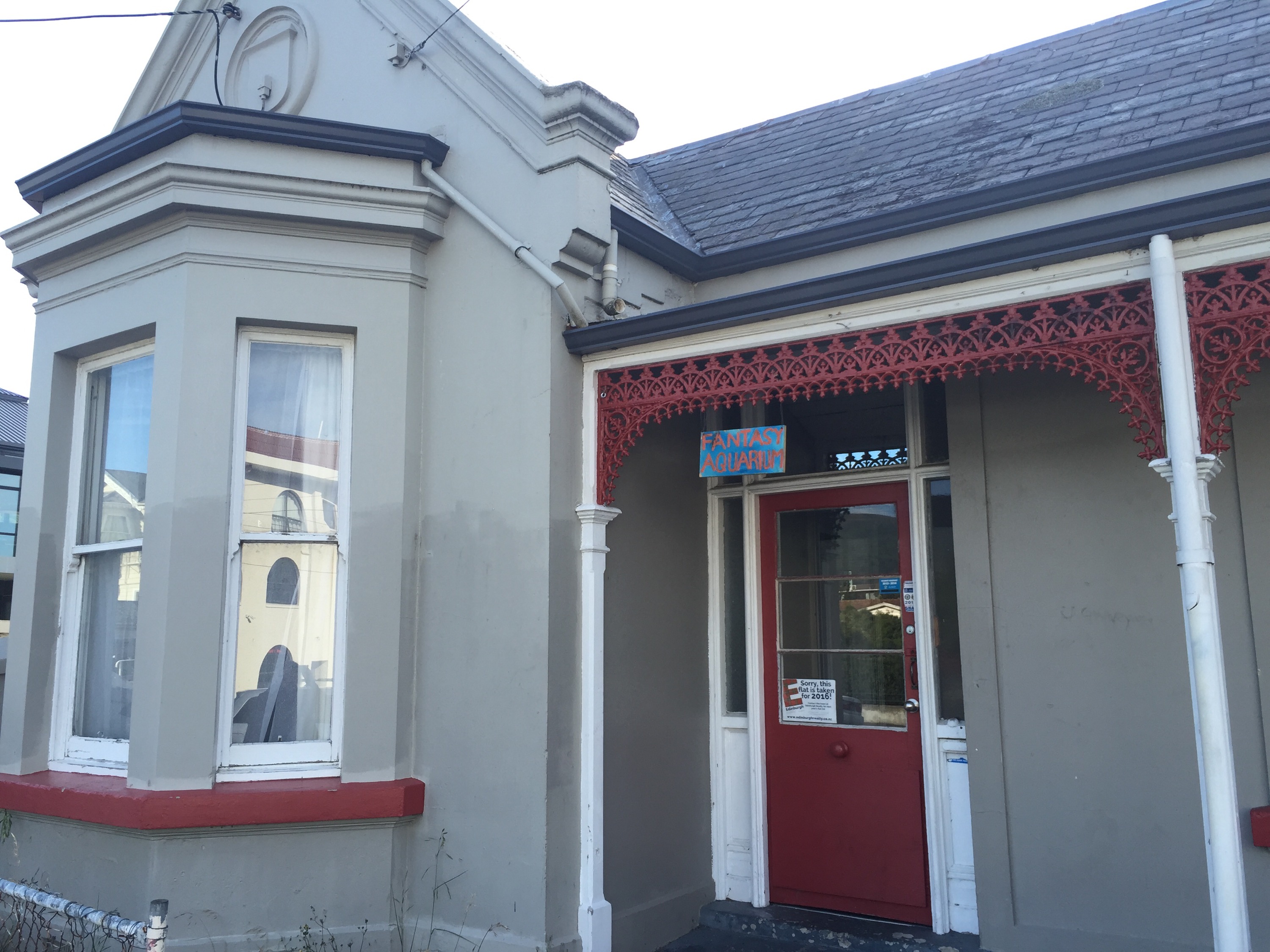 Three years ago on a rainy Monday morning in Christchurch, I picked up the phone and called Ji Fraser to interview him about his band Six60, named for their flat at 660 Castle Street. When I asked him about how he found flatting in Dunedin he responded diplomatically, “Flats are not that nice to live in but have heaps of character.” The house and it’s neighbour, were built c 1927-8, and are now looking their age.