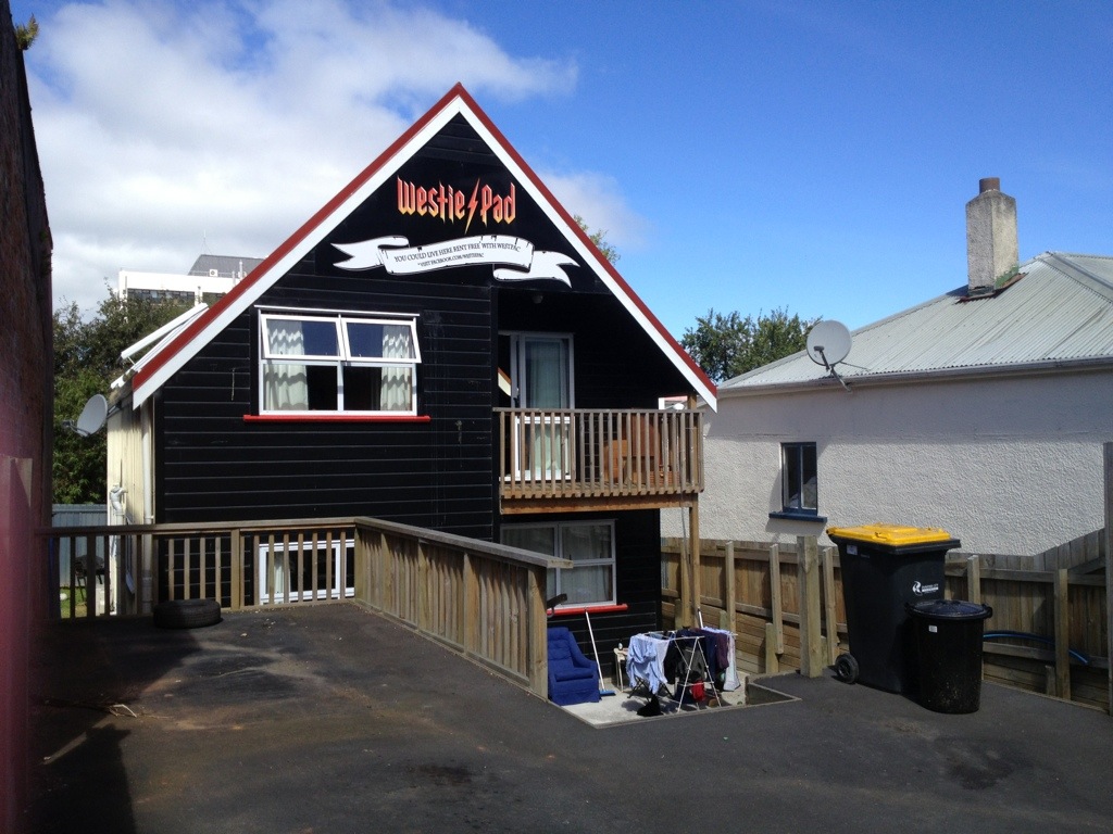 The Westie Pad was one of the first sponsored flats in Dunedin. It is rented by Westpac Bank and sublet to the group of students who win a set of challenges for the right to live rent free for a year. Despite competition being a bit thin on the ground sometimes, there have been winners.