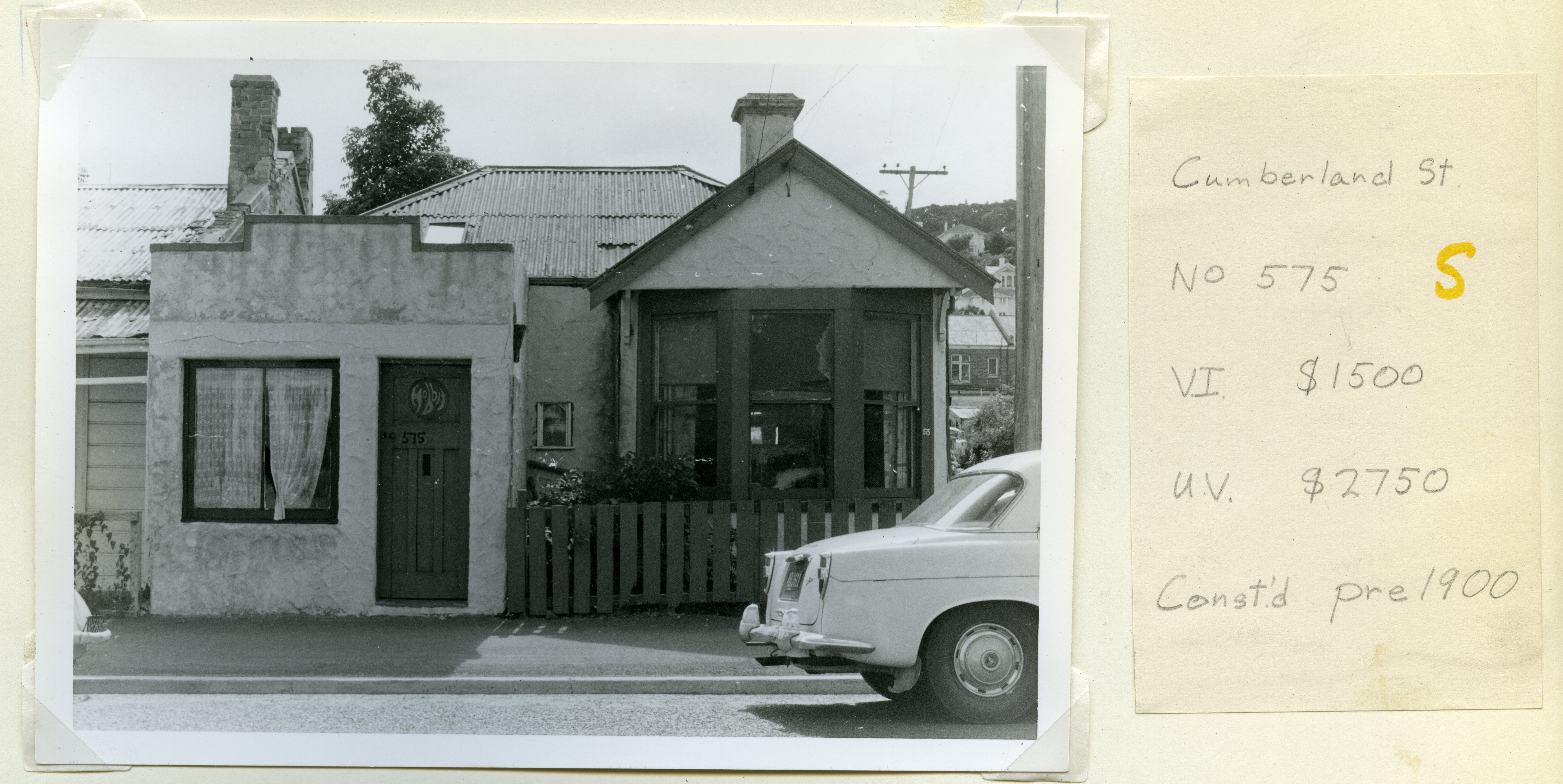 575 Cumberland Street doesn’t exist anymore, it was demolished in the 1970s when Castle and Cumberland Streets were deviated to their current course. Below you can see photos of a couple of hand drawn maps. The first, a detail, shows 575 Cumberland highlighted in green. Compare the larger hand drawn map (note the green on this larger map is NOT 575!) with the image from the DCC Webmap. You should be able to see the site of 575 Cumberland Street two sections south of 58 Albany Street.