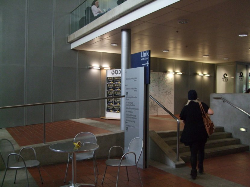 The other half of the long wall leading up to the cafe. I’m able to use the notice board for posters.