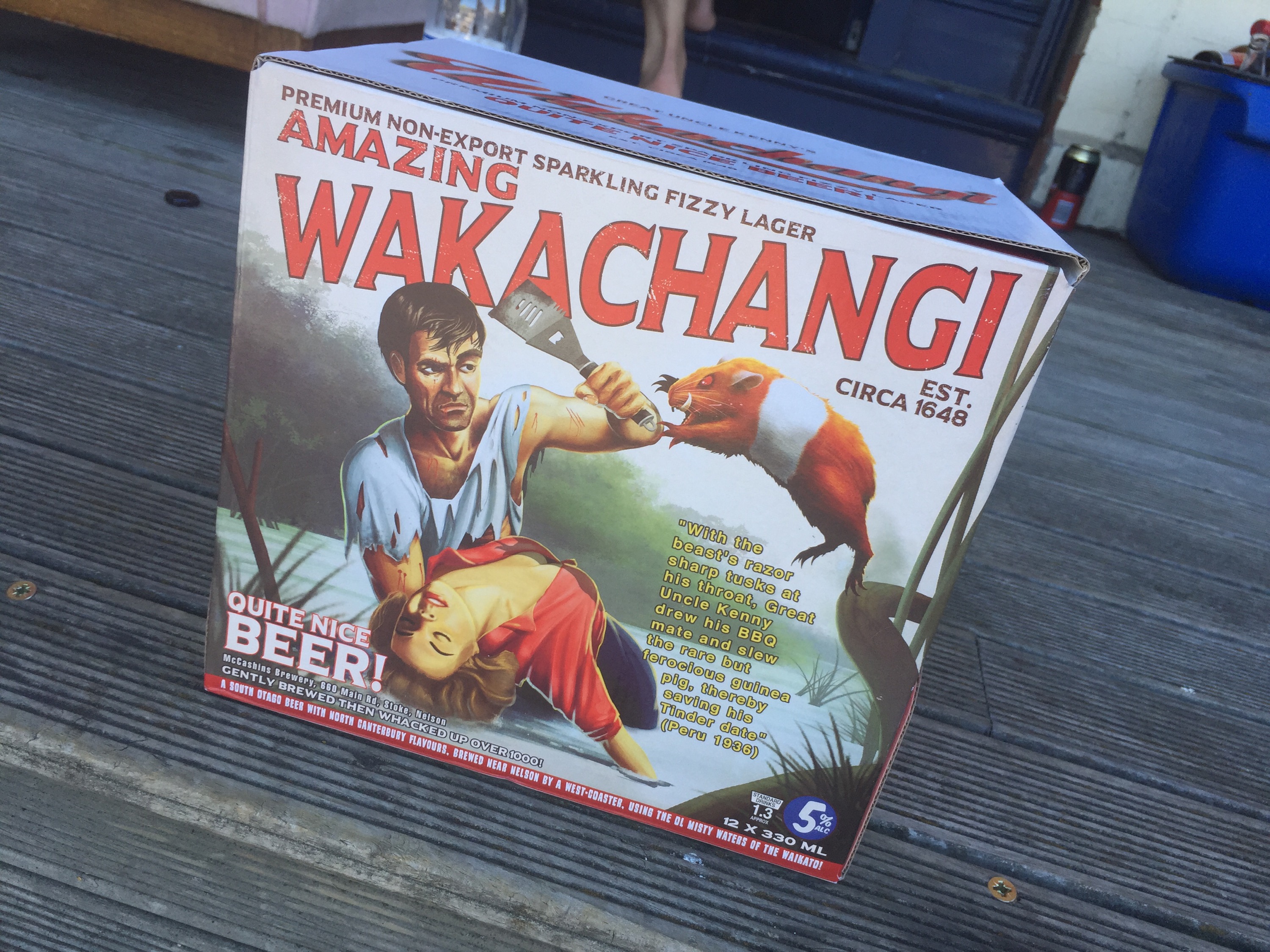 Wakachangi, is an interesting name from an onomastic perspective. Aside from being the name of the beer, the word was created by comedian Leigh Hart, aka, ‘That Guy’, (creator of Moon TV, and well known for his ubiquitous media presence as a global purveyor of Heller’s meat products) while on Sports Cafe, and refers (in a somewhat random and meandering way reminiscent of the linguistic development of words themselves) to the Waikato River.