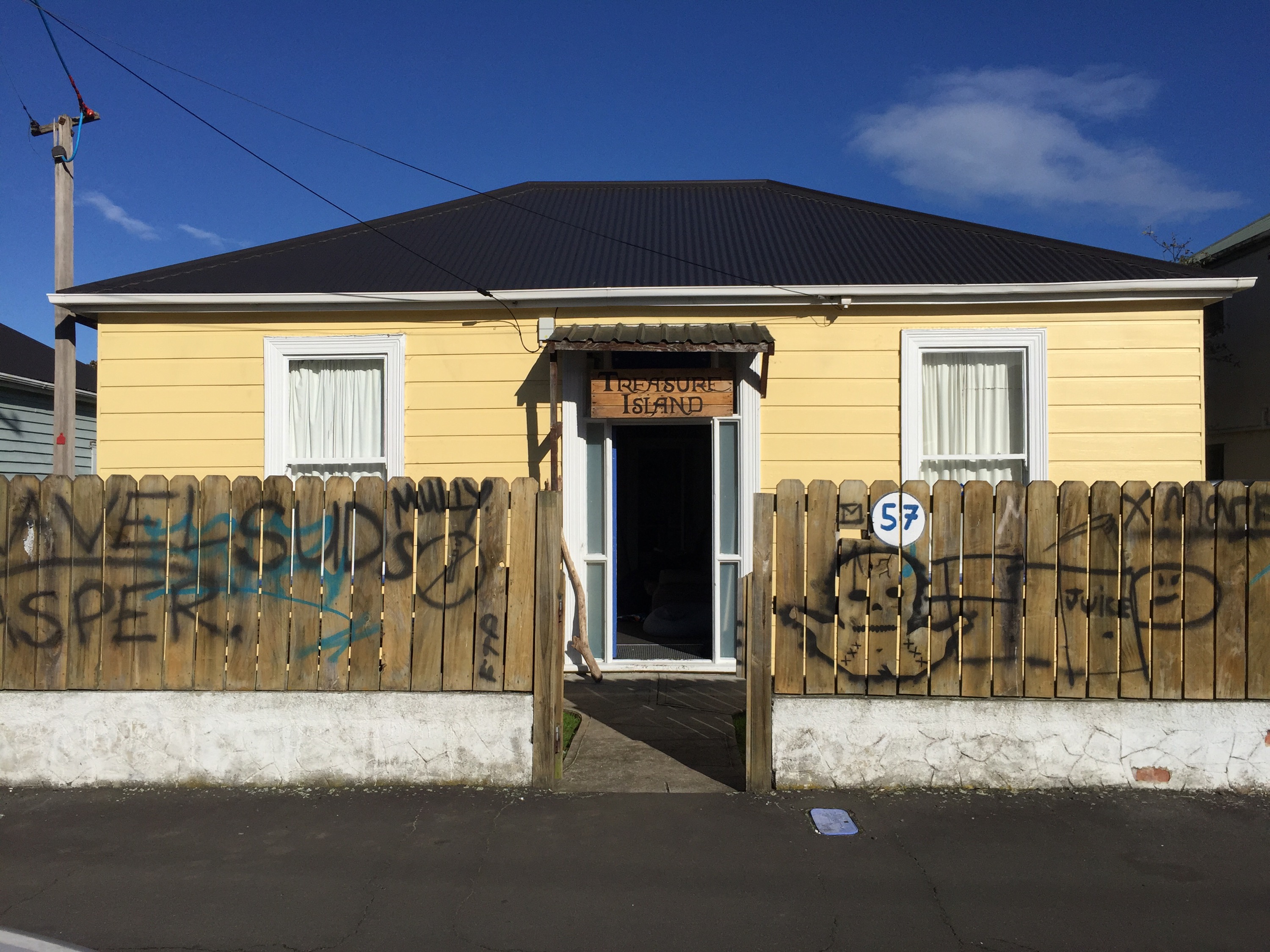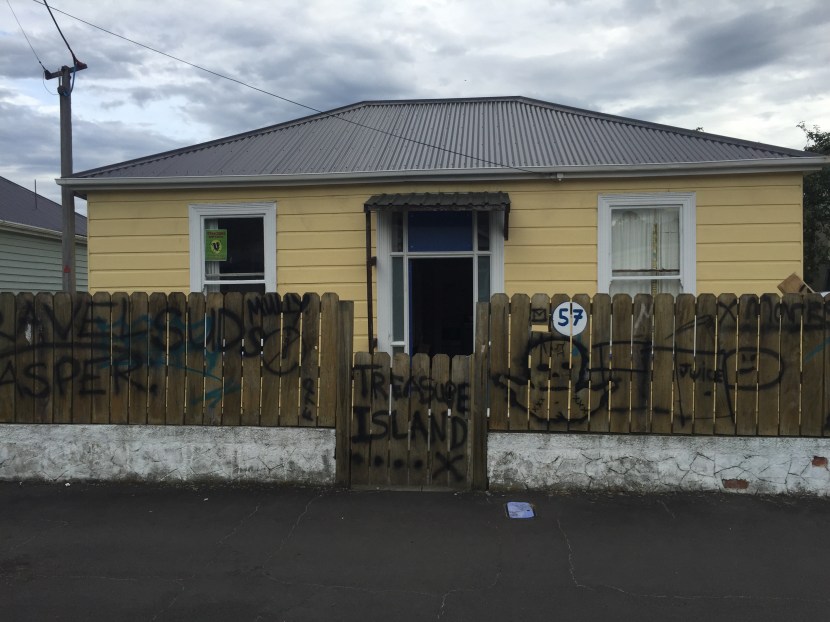 This 5 man flat was named after the novel of the same name by Robert Louis Stevenson. The flatties, all from Auckland, listened to the audio book of Treasure Island on their summer road trip back to Dunedin.