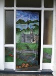 The Art Gallery and The Tool Box were the two of most interest. The Art Gallery provides a wonderfully painterly portrait of the University Clock tower with a disjointed harbour view floating above it. The painting covers the door and two lower glass side panels in the door frame.