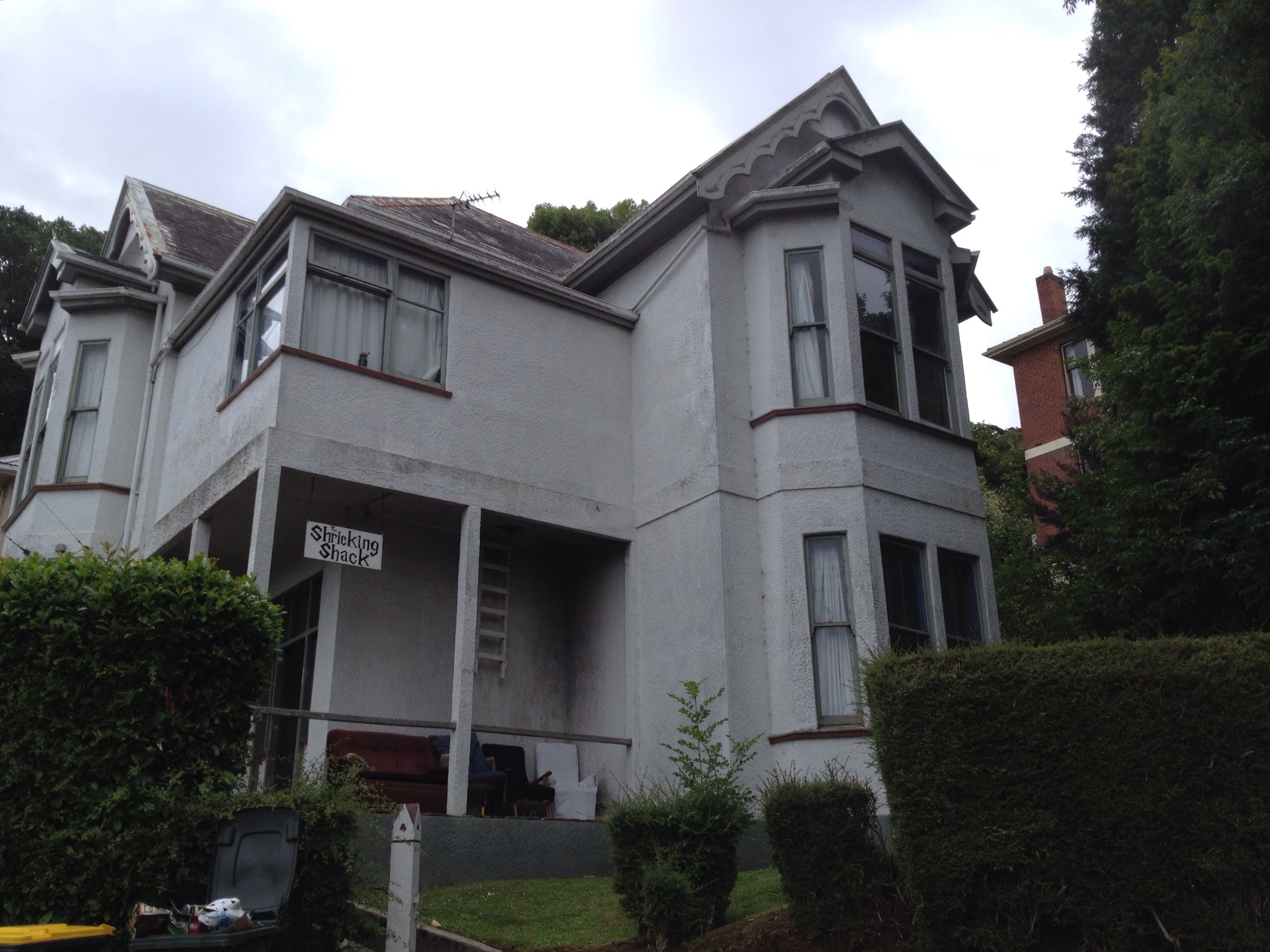 In the Harry Potter series, the Shrieking Shack was commonly known as the most haunted house in England. In Dunedin the Shrieking Shack on Great King Street received its name in 2010 from Scott Honeyfield, a Potter fan, and his flatmates. Scott told me the age and character of the house suited the name. Interestingly the house is also well known for it’s toilet under the stairs that can not accommodate persons of height. The toilet under the stairs may allude to the shitty living conditions Harry Potter experienced while living with the Dursley’s on Privet Drive. I acknowledge this may be a bit of a reach on my part.