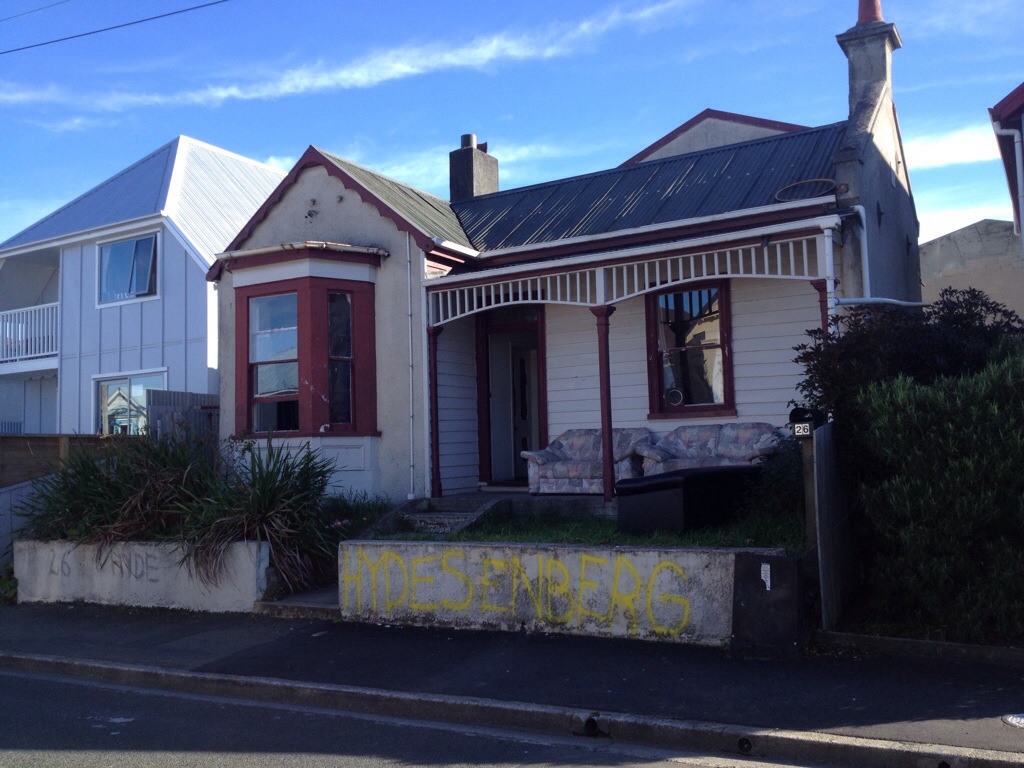 I took a walk down Hyde Street this morning before leaving Dunedin to check out the new named flats – here’s a bunch of pics on the Facebook Group.